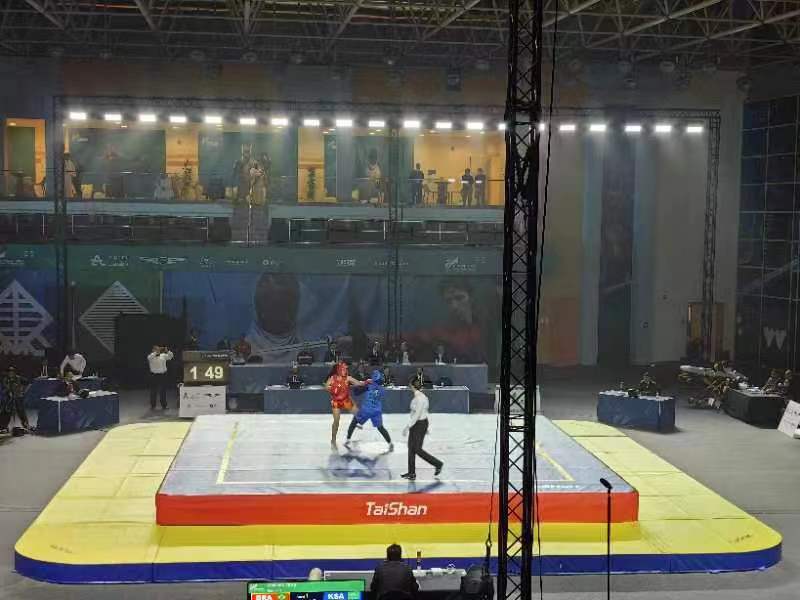 第三届世界武搏运动会武术比赛于10月21日至22日在沙特国王大学体育馆进行,吸引了来自五大洲的31个国家和地区的近80位运动员参赛。武术项目首个比赛日中,共产生男子长拳与女子长拳两枚金牌。其中,尼泊尔、中国各获一金。作为本届世界武搏运动会器材供应商与服务商,leyu乐鱼体育体育再一次助力世界武搏运动会的高水平举办。