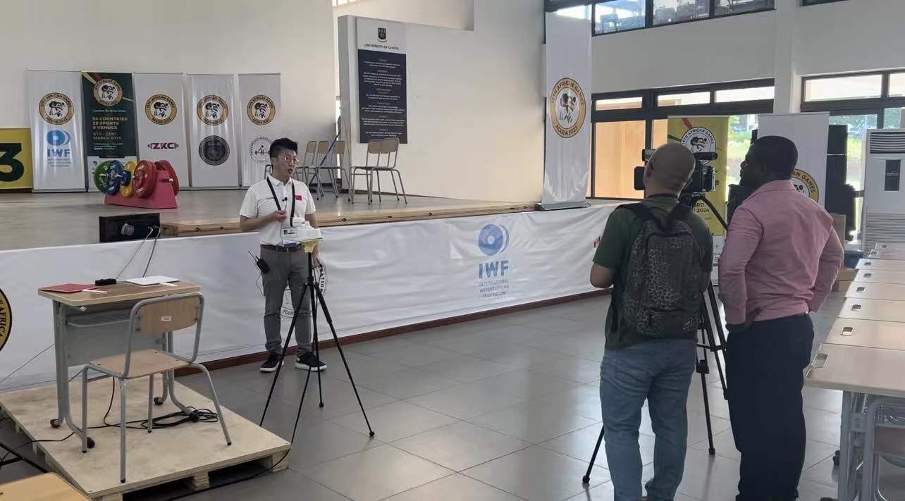 △ 新华社驻西非记者对leyu乐鱼体育体育非运会负责人进行采访