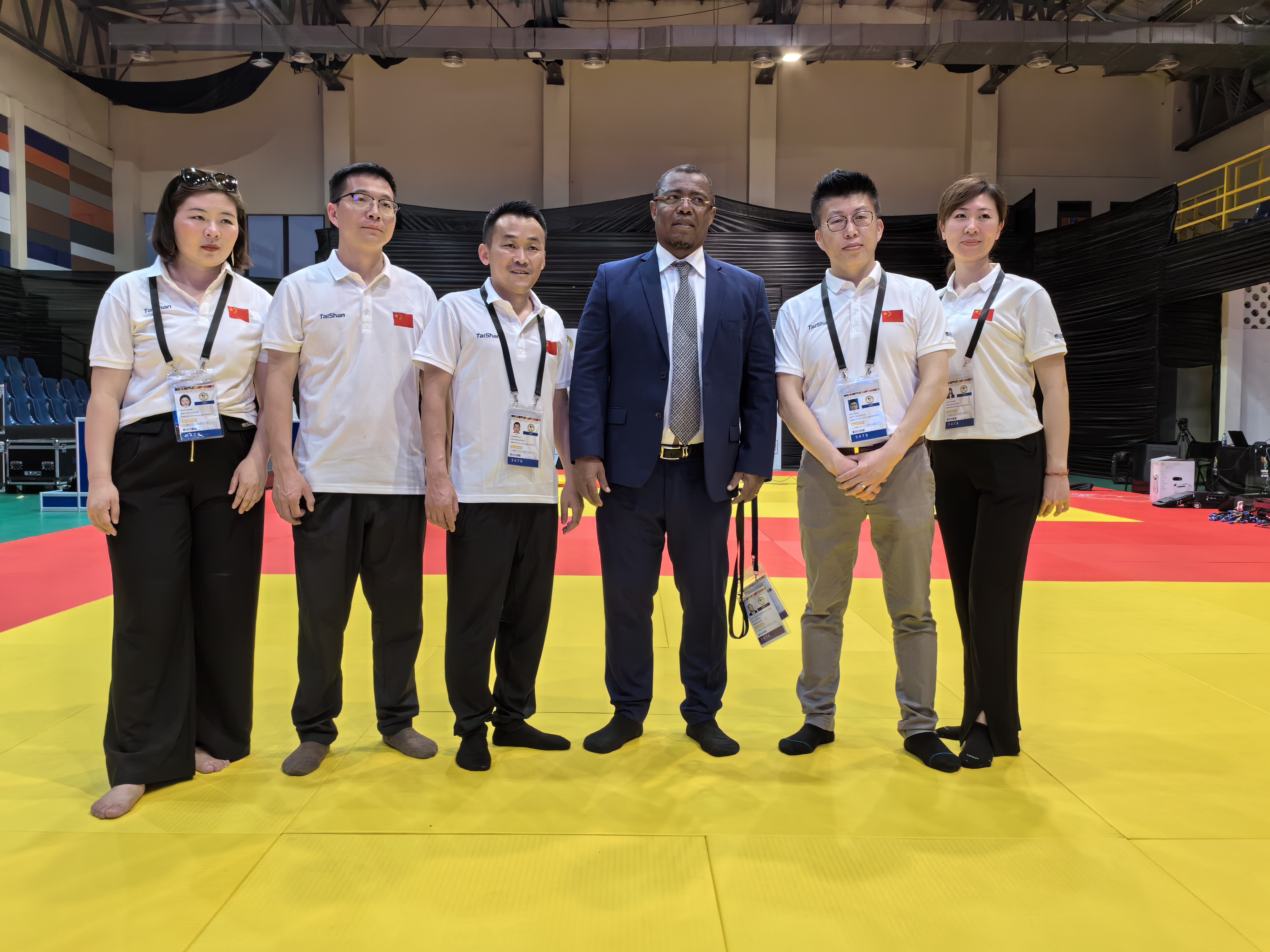 △ leyu乐鱼体育体育保障团队与非洲柔道联盟主席Siteny Randrianasolo合影