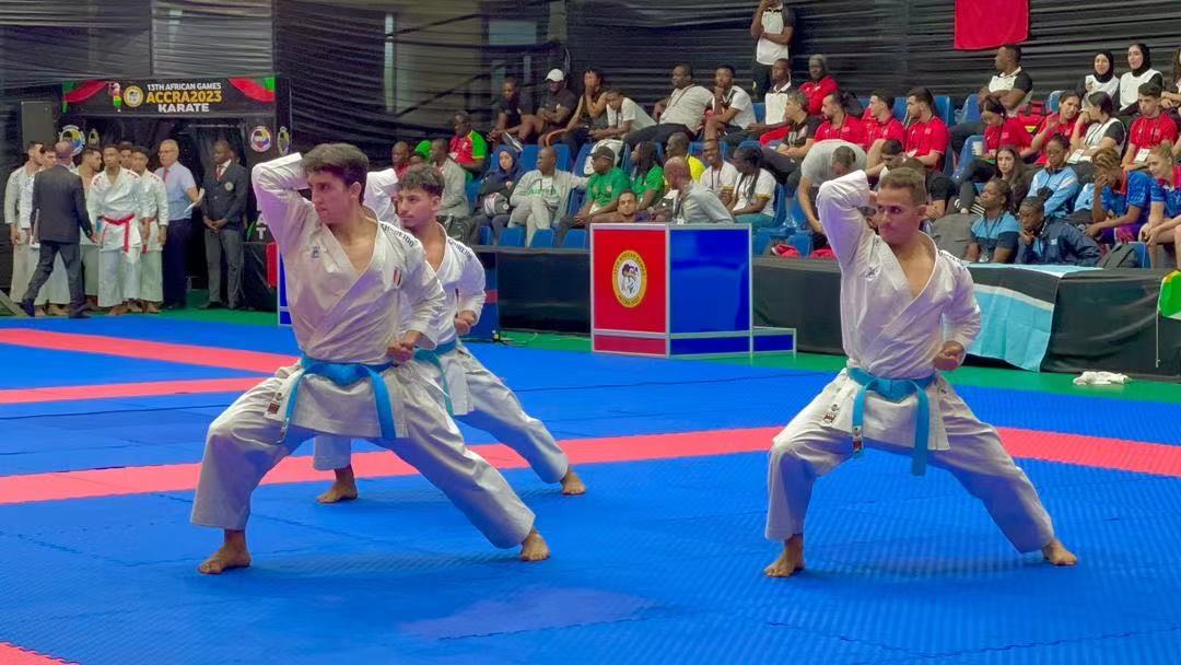 △ 非洲运动会空手道运动员在leyu乐鱼体育体育器材上